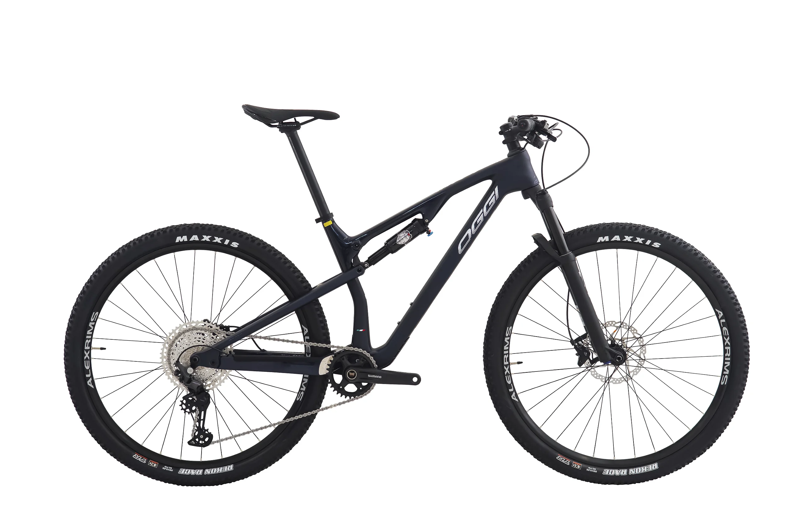 Rodas de Alta Performance: Equipadas com cubos Shimano Deore, aros Alexrims de 25mm e pneus Kenda Booster Pro Tubeless Race, preparadas para enfrentar qualquer desafio.